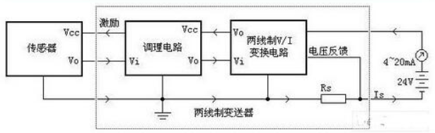 2021-09-17 06:40:47本文關(guān)鍵字:壓力傳送器 壓力傳送器主要由測(cè)量電路、過程連接件和測(cè)壓元件傳感器三部分組成。當(dāng)壓力信號(hào)作用于傳感器時(shí),壓力傳感器將壓力信號(hào)轉(zhuǎn)換成電信號(hào),經(jīng)差分放大和輸出放大器放大,然后經(jīng)V/A電壓電流轉(zhuǎn)換成與被測(cè)介質(zhì)的液位壓力成線性對(duì)應(yīng)關(guān)系的4-20mA標(biāo)準(zhǔn)電流輸出信號(hào)。 壓力傳送器電路圖: 壓力變送器為什么要采用電流信號(hào)呢?因?yàn)椴捎秒娏餍盘?hào)的原因是不容易受干擾,常取2mA作為斷線報(bào)警值。并且電流源內(nèi)阻無窮大,導(dǎo)線電阻串聯(lián)在回路中不影響精度,在普通雙絞線上可以傳輸數(shù)百米。下限沒有取0mA的原因是為了能檢測(cè)斷線:正常工作時(shí)不會(huì)低于4mA,當(dāng)傳輸線因故障斷路,環(huán)路電流降為0;上限取20mA是因?yàn)榉辣囊螅?0mA的電流通斷引起的火花能量不足以引燃瓦斯。